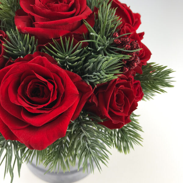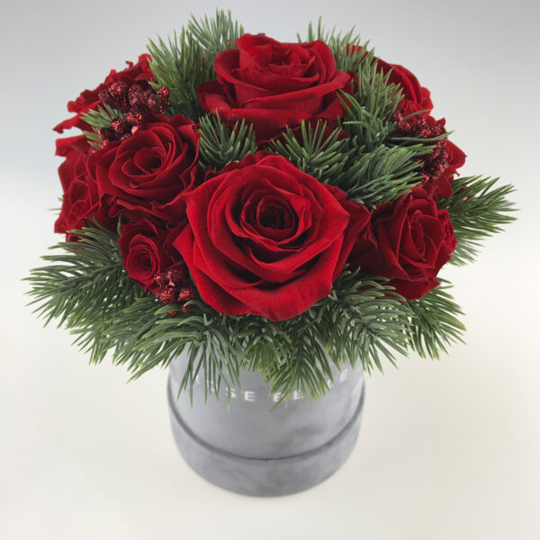 Świąteczny Box z pewnością będzie wielką niespodzianką, nieczęsto zdarza się, że dostajemy pod choinkę kwiaty, a do tego takie, które będą piękne jeszcze w czasie kolejnych świąt. Jego spokojna kolorystyka i klasyczna optyka sprawiają, że spodoba się paniom w każdym wieku. Jeżeli mamy wątpliwości, co do upodobań obdarowywanej osoby, ten box będzie świetnym wyborem.